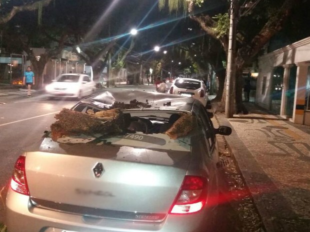 Um carro de passeio ficou parcialmente destruído nesta segunda-feira, 30, após ser atingido por uma colmeia de abelhas que despencou de uma árvore. O fato ocorreu no bairro Vitória, em Salvador.