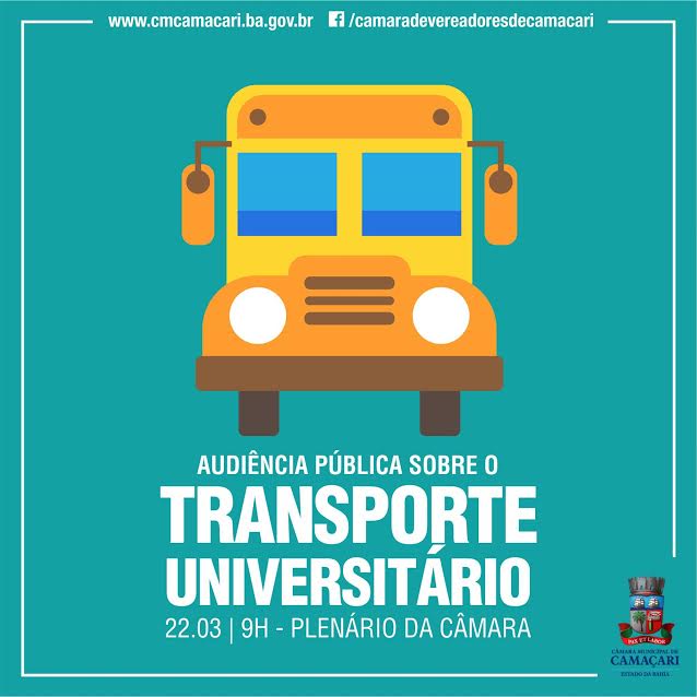 A situação do serviço de Transporte Universitário de Camaçari será tema de debate nesta quarta-feira (22/03), a partir das 9h, no plenário da Casa. A audiência pública foi proposta pelo vereador Jackson Josué (PT) e aprovada por unanimidade pelos demais parlamentares.